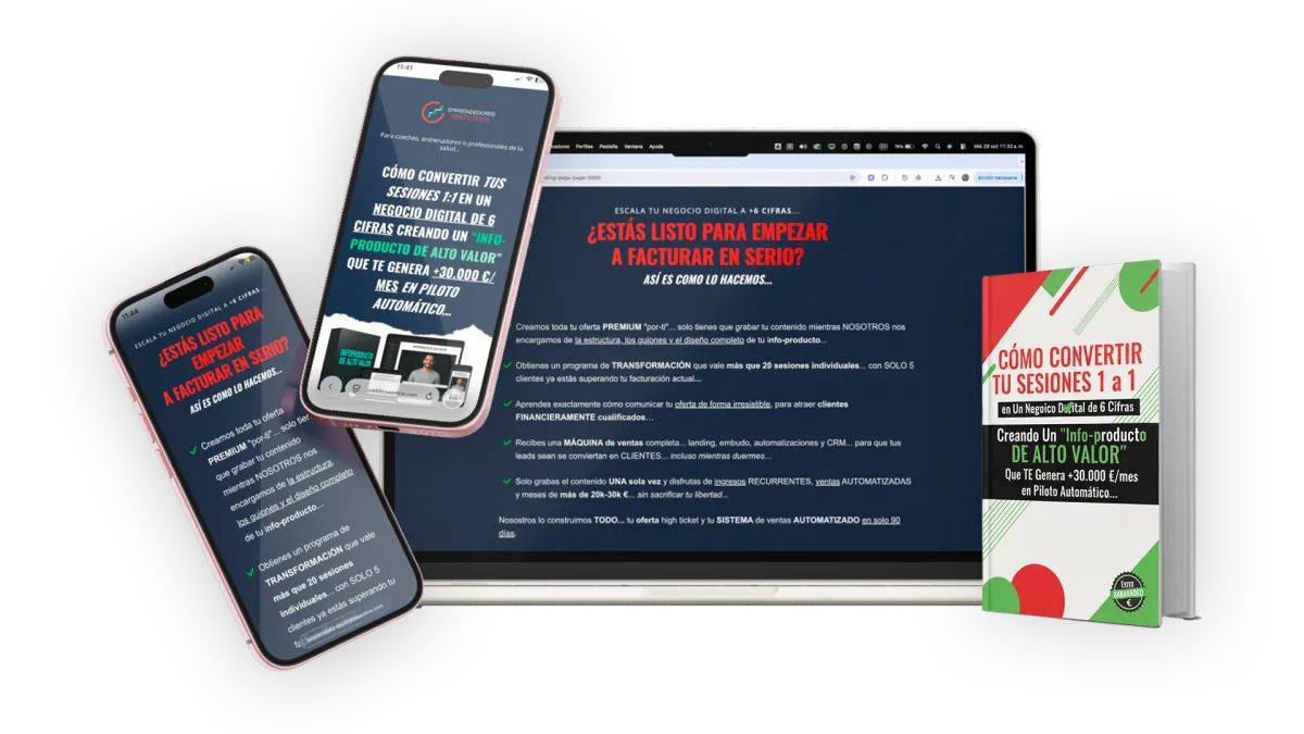 Cada elemento está optimizado para reforzar tu autoridad y ATRAER clientes dispuestos a invertir entre 1.000 € y 2.000 €... sin necesidad de convencerles...